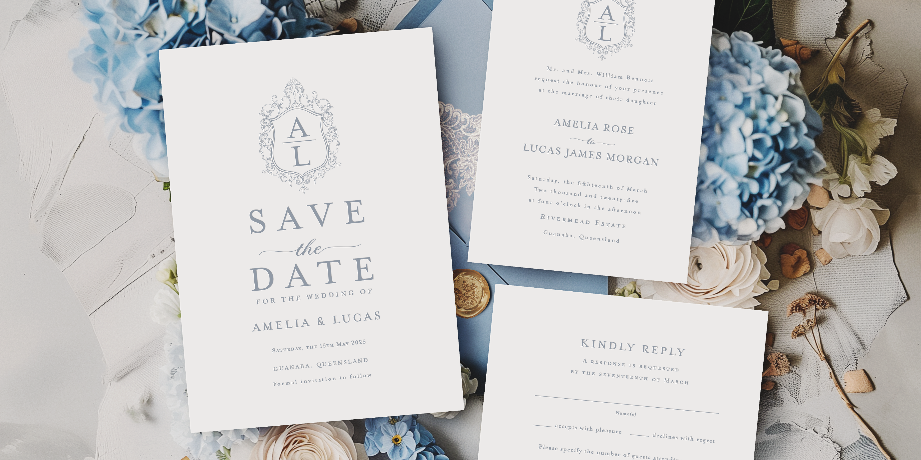 For couples seeking exquisite design with a streamlined approach, my semi-custom signature collections offer the perfect balance of luxury and convenience. These curated suites are designed with timeless elegance and can be personalised to reflect your unique style. With refined typography, exquisite printing techniques, and carefully selected materials, these collections provide a sophisticated and effortless solution.
