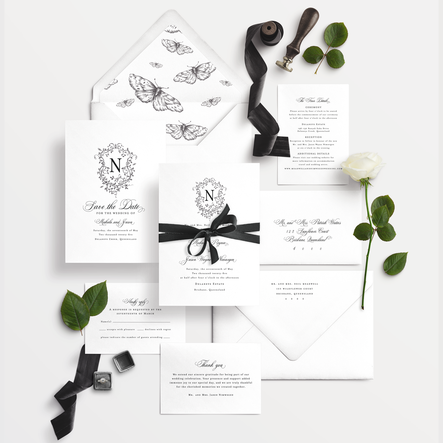 For couples seeking exquisite design with a streamlined approach, my semi-custom signature collections offer the perfect balance of luxury and convenience. These curated suites are designed with timeless elegance and can be personalised to reflect your unique style. With refined typography, exquisite printing techniques, and carefully selected materials, these collections provide a sophisticated and effortless solution.